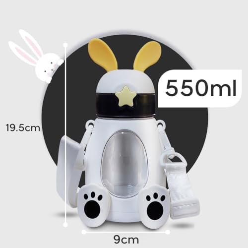 Generic - زجاجة مياه مع شفاطة 550 مل مانعة للتسرب خالية من البيسفينول ايه مع مقابض، زجاجة شرب بلاستيكية متينة قابلة لاعادة الاستخدام للاطفال والكبار للسفر والمدرسة والرياضة (ابيض)