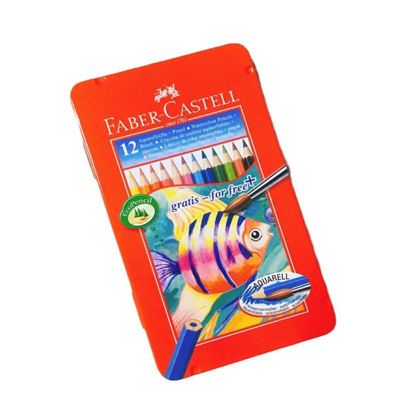 Generic - مجموعة أقلام تلوين خشب مائية مع صندوق معدني، متعددة الألوان، 12 قطعة