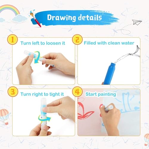 Generic - لوحة تلوين بالماء مخصصة للأطفال، مجموعة أقلام وطوابع سحرية للرسم والألعاب التعليمية للأطفال