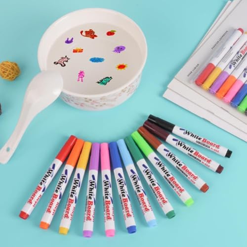 Generic - قلم رسم سحري عائم مائي، عبوة من 12 قلم رسم للسبورة البيضاء، تتضمن ملعقة واحدة، أقلام رسم آمنة للأطفال مع حبر قابل للغسل، مجموعة فنية مثالية للأطفال من سن 5 سنوات فما فوق, الآن فى 🏡 البيت الانيق (12)