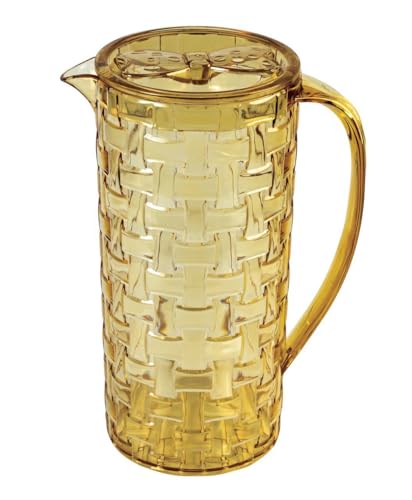 Generic - إبريق ماء وعصائر ومشروبات ، من أكريليك كرستال صحي وآمن للثلاجة وغسالة الأطباق، إبريق بسعة كبيرة 1.5 لتر بمقبض متين وغطاء(عسلي شفاف)