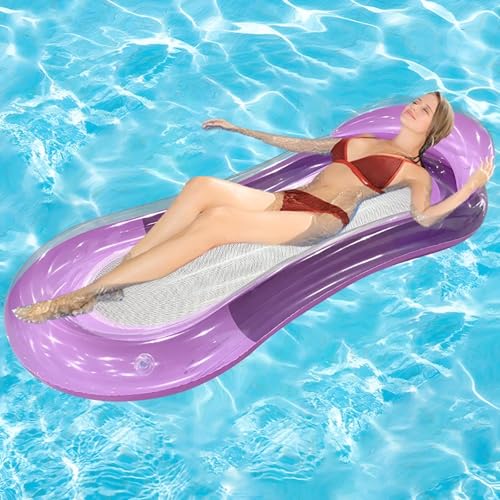 - تتميز عوامة الاسترخاء القابلة للنفخ للبالغين بتصميم سرير عائم مع قسم شبكي ناعم في المنتصف، مما يوفر تجربة مريحة ومريحة في حمام السباحة، مثالية للاسترخاء والاسترخاء.