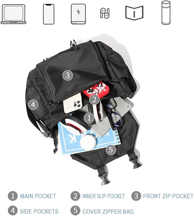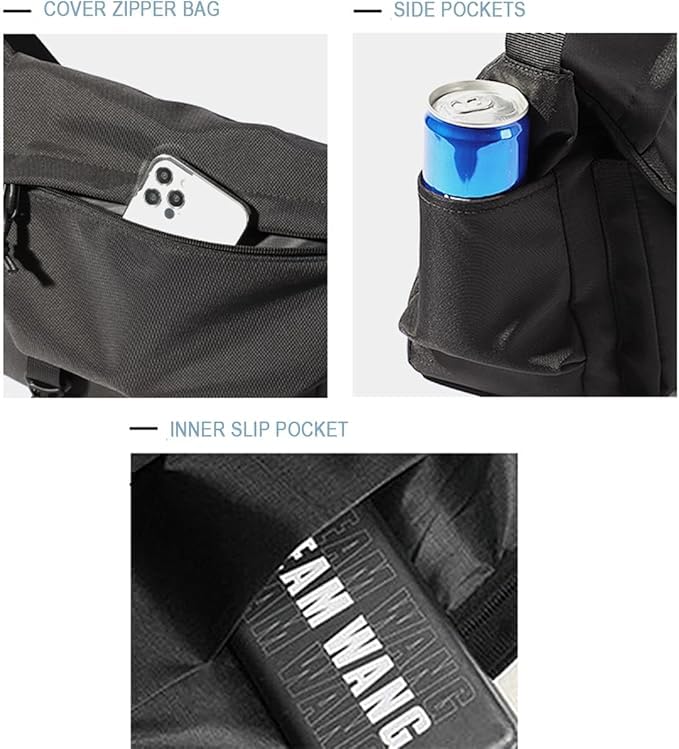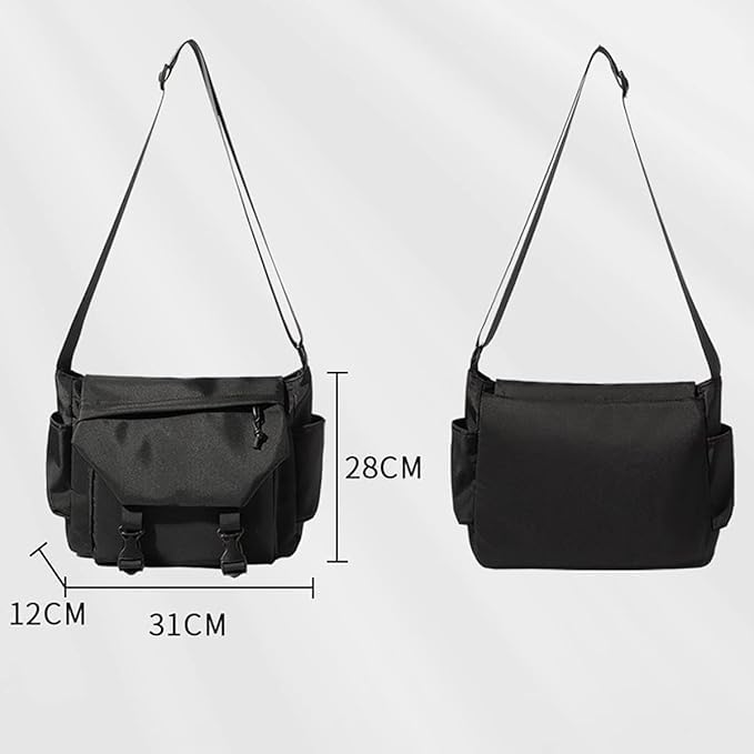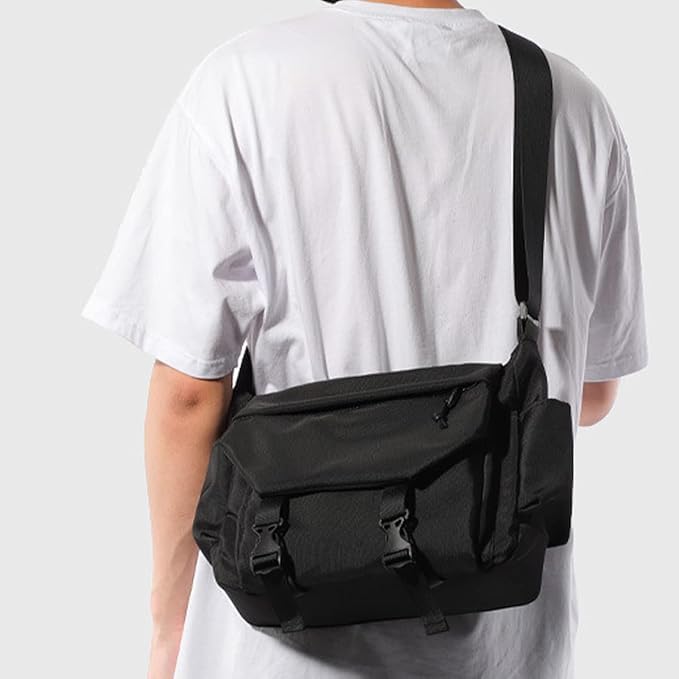 Aigomio - شنطة مراسل مقاومة للماء، شنطة كتف بأحزمة كروس، شنطة كتب كروس للعمل تناسب لاب توب 14 بوصة للرجال والنساء، لون أسود