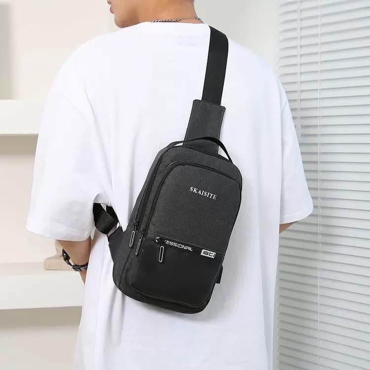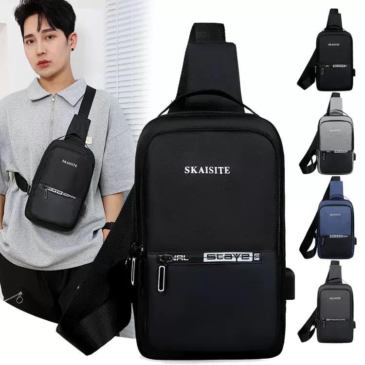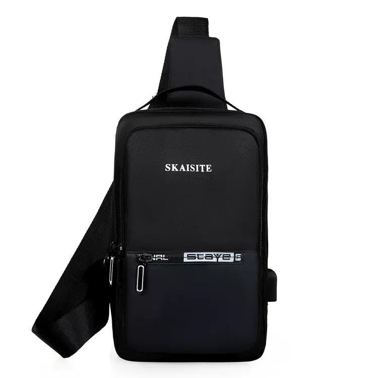 Generic - حقيبة كتف متعددة الأغراض مقاومة للماء مع جيب خارجي ومنفذ شاحن USB، مكس