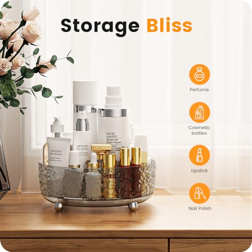 A-LuGei - منظم مكياج وعطور للطاولة والحمام والتخزين من ايه-لوجي، 【دوران °360】 منظم دوار يشبه آلية ليزي سوزان لترتيب منتجات العناية بالبشرة لطاولة الزينة والخزانة والكومودينو، لون أسود، مقاس 23 سم【نمط تموج مائي】
