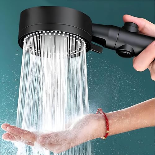 Generic - رأس دش موفر للمياه - نفاثة قابلة للتعديل بضغط عالي مع وظيفة التدليك، لمسة نهائية سوداء دائرية، حامل يثبت على الحائط، وحدة واحدة للاستخدام الفعال للمياه