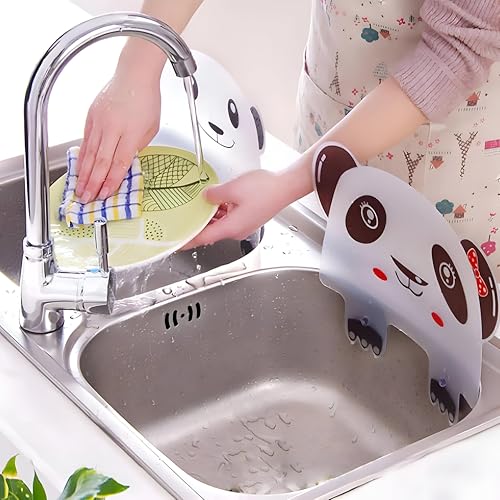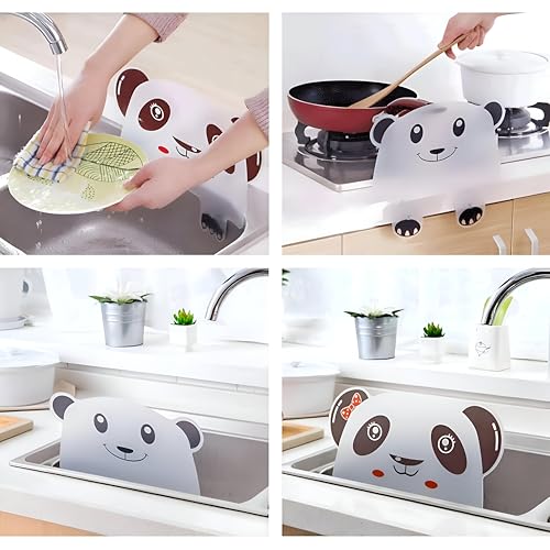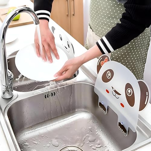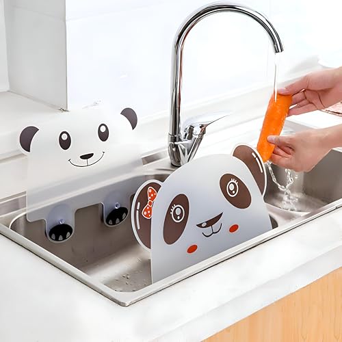 Generic - واقي من رذاذ الماء - حاجز سيليكون مقاوم للماء بتصميم باندا - بطانة ماصة للمطبخ والحوض وصنابير الحمام - سهل التركيب - بدون قطرات (القطعة - 2)