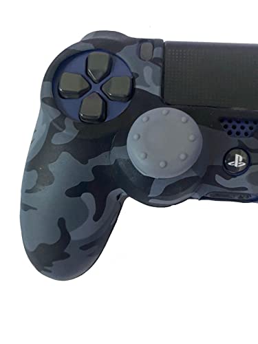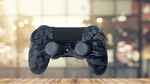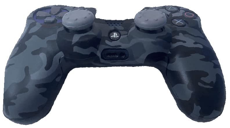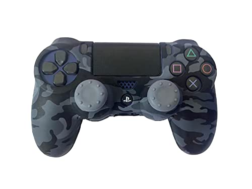 Generic - جراب سيليكون بلون اسود ورمادي بتقنية الطباعة بواسطة الماء لذراع تحكم الالعاب لجهاز سوني بلاي ستيشن 4-سليم-برومع 2 ازرار ابهام مع مقبضين للابهام رمادي