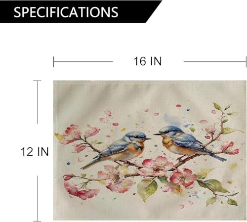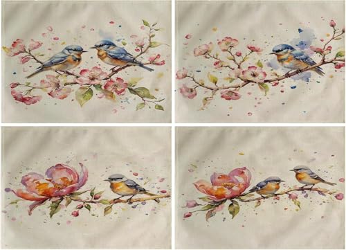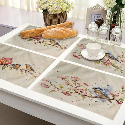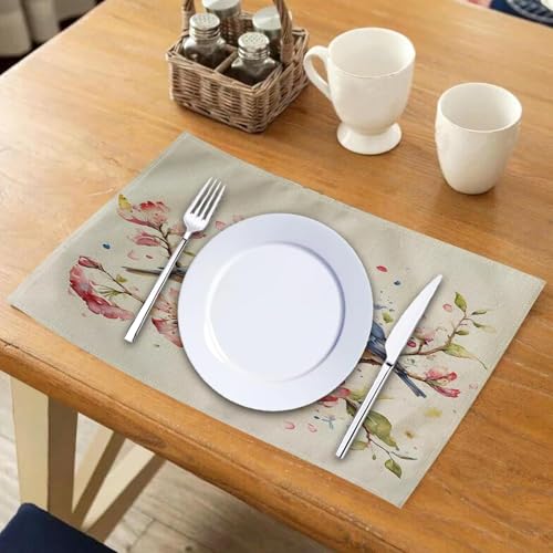Generic - طقم مفارش طاولة بتصميم طيور بالوان مائية من 4 قطع، مفارش مقاومة للحرارة وقابلة للغسل وغير قابلة للانزلاق لغرفة العشاء والمطبخ وديكور الطاولة 12 انش × 16 انش (بينك)