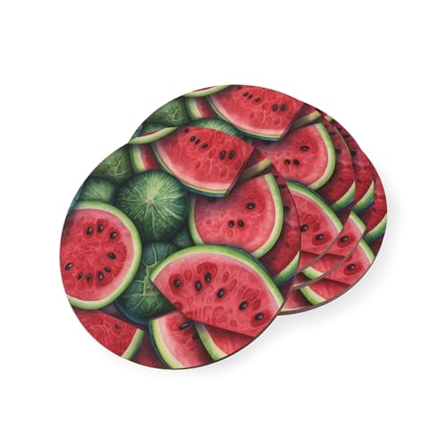 Generic - قواعد اكواب بتصميم بطيخ - مجموعة من 4 قواعد اكواب مطاطية مقاومة للحرارة ومتينة - مجموعة من 4 قطع - قواعد اكواب - 9 قطع