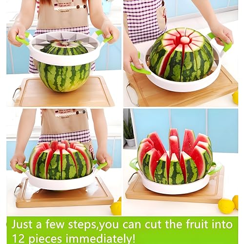 Generic - أداة تقطيع البطيخ بتصميم مبتكر مزودة بشفرة متينة من الفولاذ المقاوم للصدأ تتيح تقطيع البطيخ والشمام بسهولة للحصول على شرائح متناسقة وجميلة