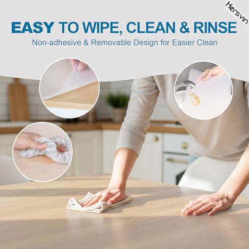 - غير لاصق وسهل التنظيف: تبقى المفارش في مكانها بدون مواد لاصقة، لذلك من السهل إزالتها للتنظيف. فقط امسحه بقطعة قماش مبللة للحفاظ عليه منتعشًا وصحيًا.