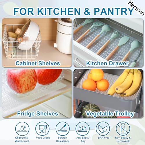 - استخدام متعدد الاستخدامات ومتعدد الأغراض: حل مثالي لتبطين دولاب المطبخ أو أدراج الحمام أو أرفف المؤن أو الثلاجات، أو للاستخدام كمفارش غير قابلة للانزلاق على الطاولات ومحطات العمل.