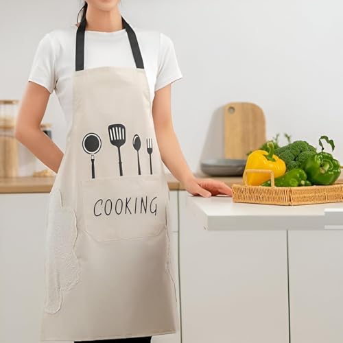 Generic - مريلة مقاومة للماء - مريلة عملية وعصرية، مصممة للطهي والتنظيف وبيئات المقهى، تتميز بقماش مقاوم للماء ومناشف جانبية مخملية وجيب امامي واسع للاساسيات