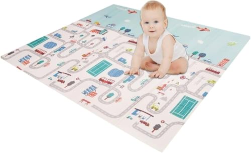 Generic - سجادة لعب مقاومة للماء من الفوم للزحف للأطفال الصغار | سجادة أرضية سميكة قابلة للطي بنقشات لطيفة، مقاس 2 × 1.8 متر