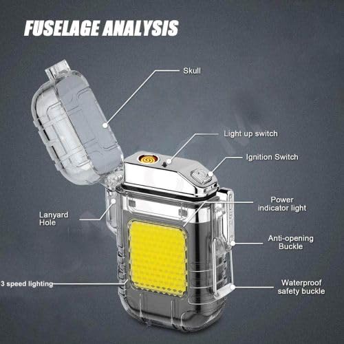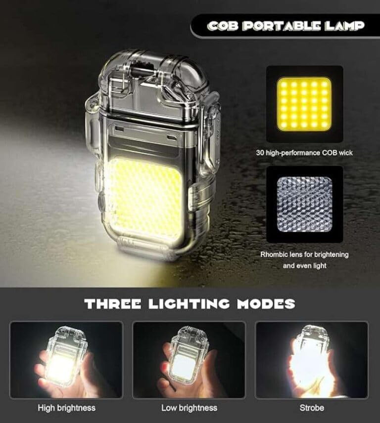 Generic - ولاعة كهربائية مقاومة للماء مع مصباح يدوي يوفر 3 مستويات اضاءة مختلفة، مثالية لرحلات الشاطئ والتخييم قابلة لاعادة الشحن