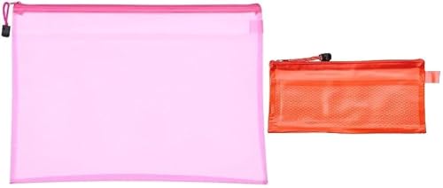 Generic - ملف قماش مقاوم للماء حافظة اوراق و مستندات دوسيه بسوستة بينك A4 مع مقلمة اقلام قماشية مقاومة للماء بسوستة احمر A6