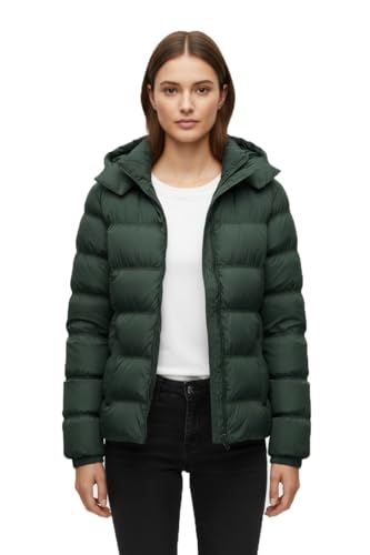 Generic - جاكيت مبطن بغطاء رأس مقاوم للماء، معطف شتوي مبطن بسوستة كاملة، ملابس خارجية كاجوال دافئة، لون أخضر فوريست (Forest Green)