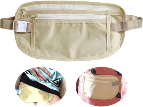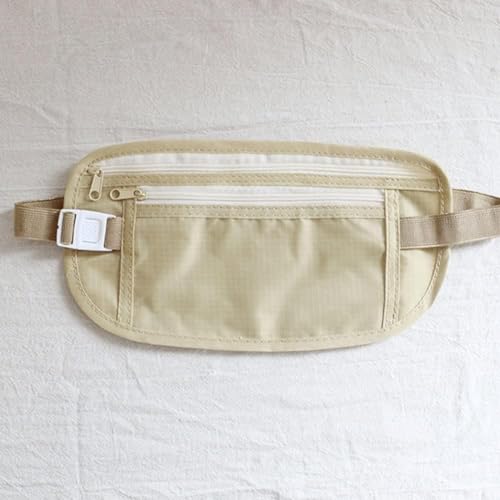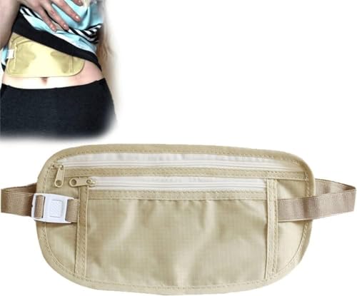 Generic - شنطة خصر غير مرئية مقاومة للماء مع جيب بسحاب امان مخفي وحزام قوي عملية للوازم الشخصية - بيج