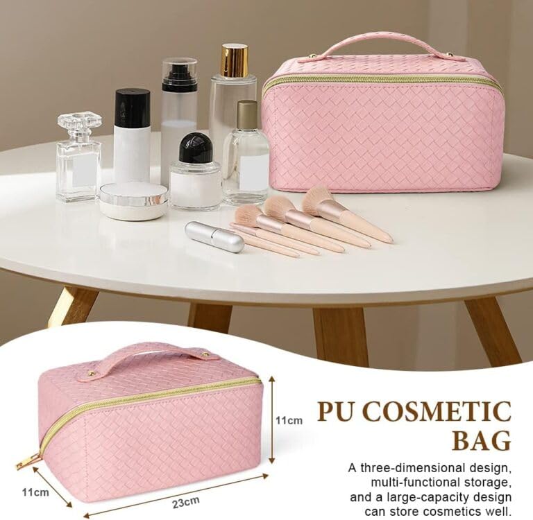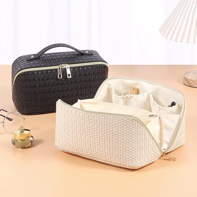 Generic - شنطة جلد مقاومة للماء لحمل وتنظيم المكياج، مع مساحات تخزين داخلية، لون اسود