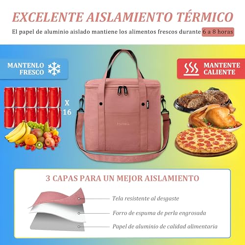 - مجهزة ببطانة عزل عالية الجودة من رقائق الألومنيوم الآمنة غذئيًا مما يحافظ على درجة حرارة الطعام سواء كان ساخنًا أو باردًا لساعات ويتميز ببطانة داخلية من الإسفنج بسمك 5 ملم لعزل حراري إضافي وسهولة التنظيف.