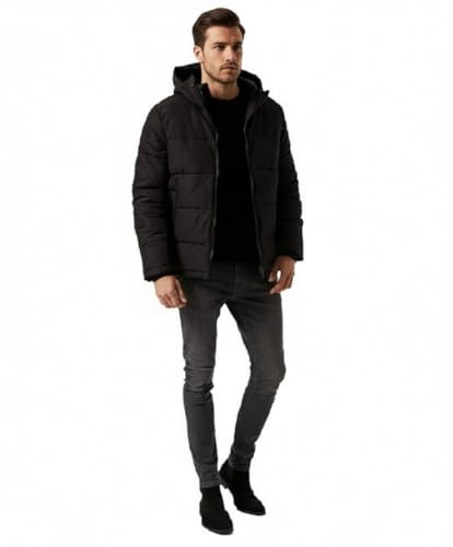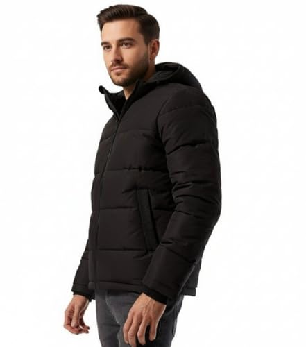 Generic - جاكيت منفوخ مقاوم للماء بغطاء راس قابل للازالة للرجال, أسود, XXL