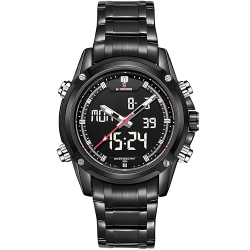 Generic - ساعات رياضية مقاومة للماء للرجال بمينا اسود معصم خارجية NF9050 B-B-W رقمي تناظري