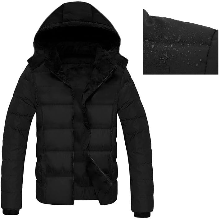 Generic - جاكيت مبطن شتوي مقاوم للماء بغطاء للرأس رجالي، معطف منفوخ مبطن مقاوم للماء، ملابس خارجية مبطنة دافئة
