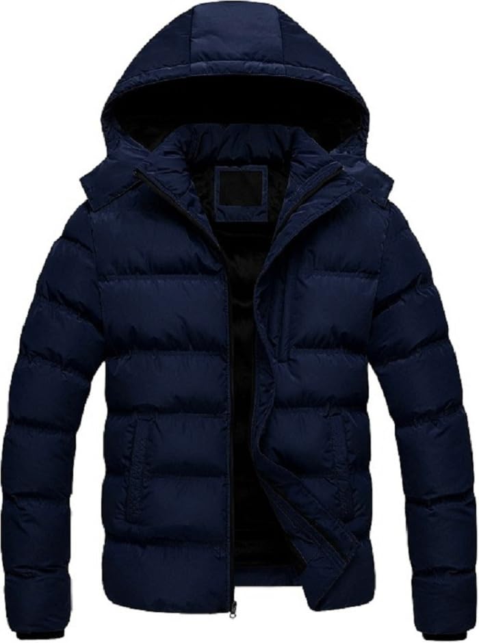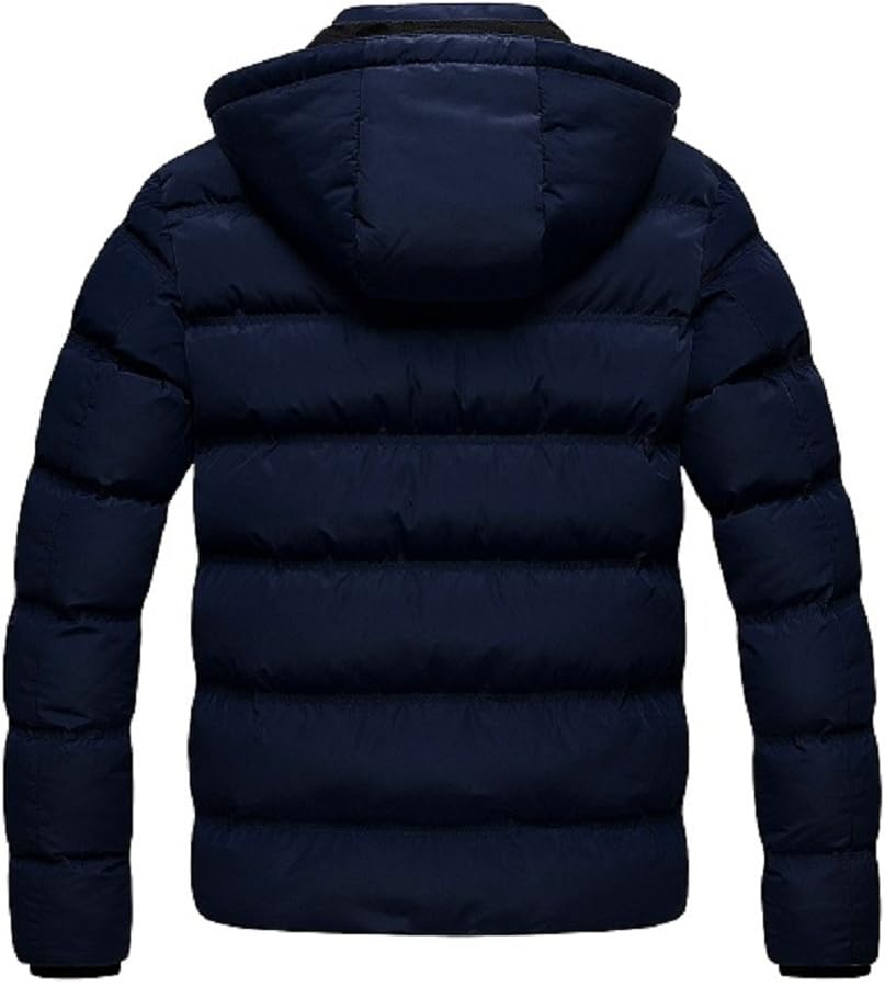 Generic - جاكيت شتوي منفوخ بغطاء للرأس مقاوم للماء للرجال، ملابس خارجية مبطنة معزولة، معطف دافئ للطقس البارد (كحلي)