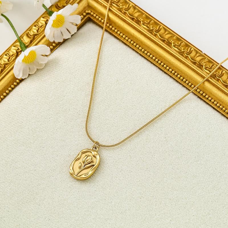 Generic - قلادة مقاومة للماء - قلادة زنبق انيقة مع تفاصيل زهور ومقاس قابل للتعديل من اجل قطع مجوهرات انيقة للنساء