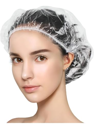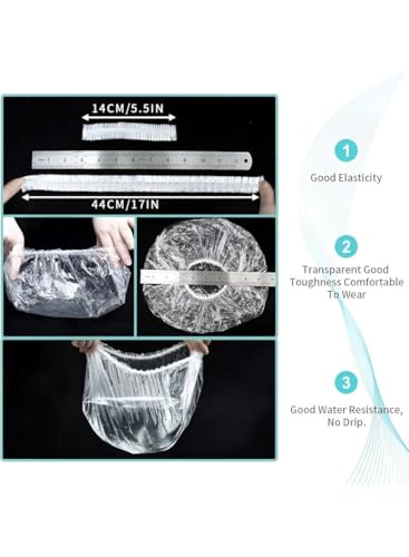 generic - قبعة استحمام مقاومة للماء - 100 قطعة من اغطية الشعر الشفافة للاستعمال مرة واحدة مع شريط مطاطي - قبعات بلاستيكية متينة ومريحة وصحية للسبا والفندق والصالون والسفر والاستخدام الشخصي