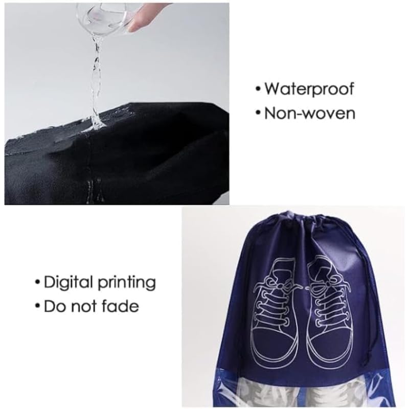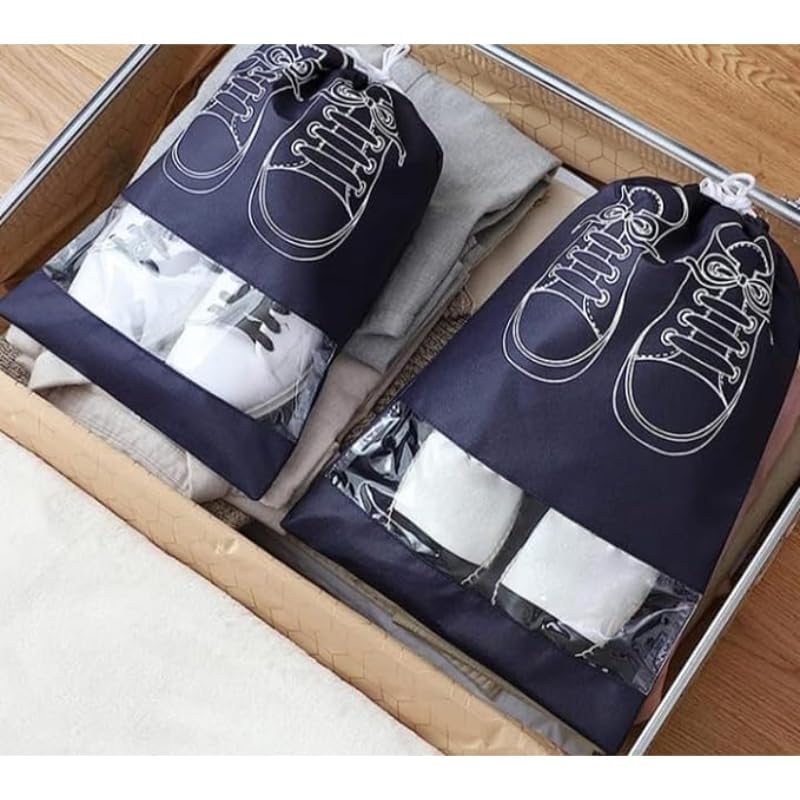 Generic - شنطة أحذية للسفر مقاومة للماء مزودة بحبل إغلاق عملي لتنظيم شنط السفر، مجموعة مكونة من قطعتين - لون كحلي