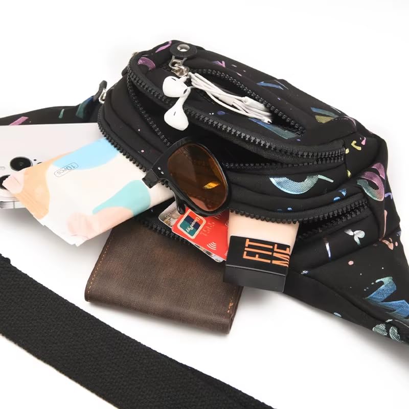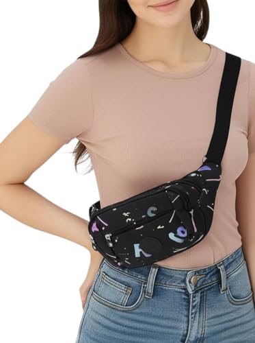 Generic - شنطة خصر مقاومة للماء للمشي لمسافات طويلة وركوب الدراجات والجري والسفر وحزام للجنسين، شنطة كتف، شنطة صدر، شنطة خصر للنساء والفتيات، حروف عشوائية (اسود)