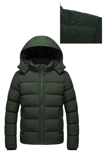 Generic - جاكيت شتوي منتفخ بغطاء للرأس مقاوم للماء ومقاوم للماء، معطف مبطن معزول بسحاب كامل، مناسب للارتداء في الهواء الطلق