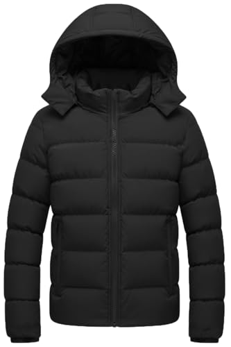 Generic - جاكيت شتوي مبطن بحشوة وتصميم مقاوم للمياه - معطف بغطاء رأس قابل للفصل - ملابس خارجية شتوية عازلة للحرارة، لون أسود