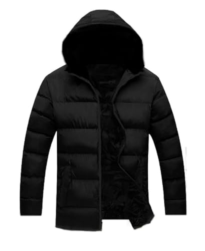 Generic - جاكيت شتوي مبطن بغطاء راس مقاوم للماء، اسود، معطف مبطن بسحاب للاغلاق، ملابس خارجية مبطنة للطقس البارد
