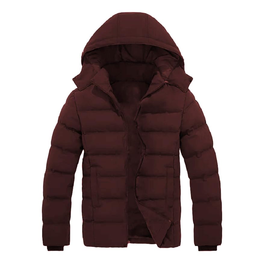 Generic - جاكيت شتوي منتفخ مقاوم للماء بغطاء للرأس، لون بورغندي، بديل مبطن، معطف مبطن دافئ مع غطاء للرأس للطقس البارد