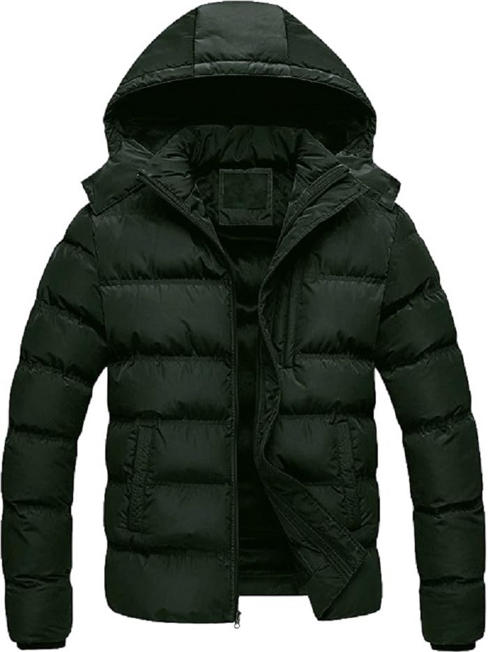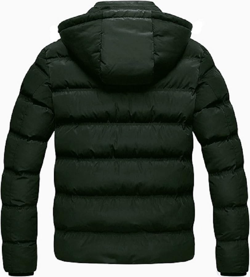 Generic - جاكيت شتوي مبطن مقاوم للماء بغطاء للرأس، لون أخضر داكن، مبطن من الأسفل، ملابس خارجية دافئة مبطنة، سوستة أمامية