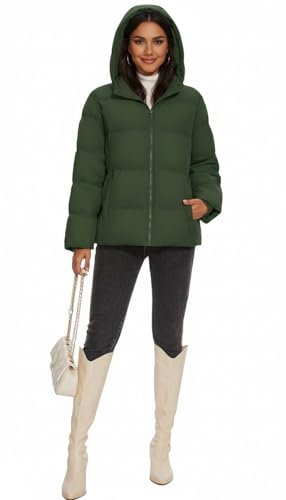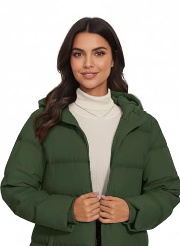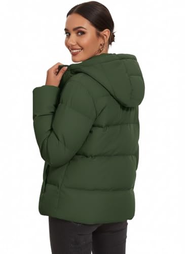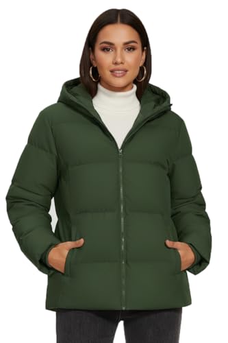 Generic - جاكيت شتوي منتفخ مقاوم للماء مع غطاء للرأس، معطف مبطن، اسود (زيتوني، L)