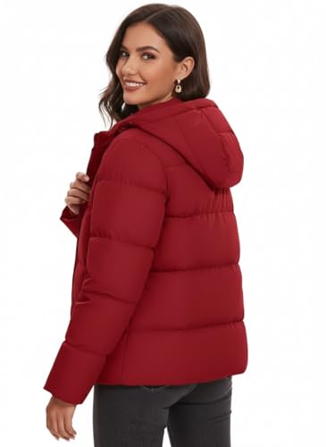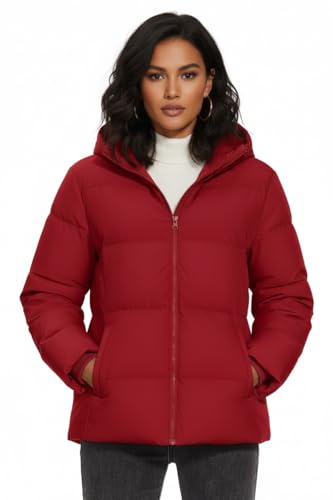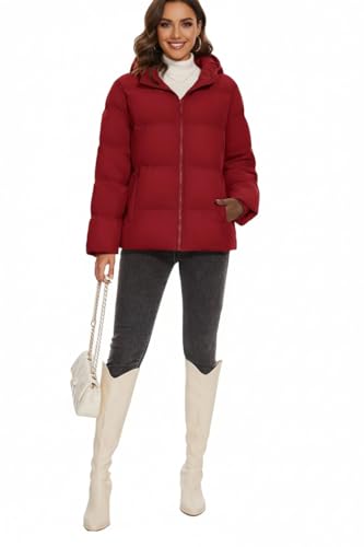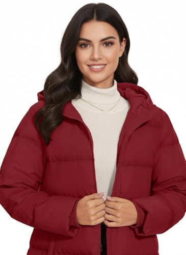 Generic - جاكيت شتوي مبطن مقاوم للماء بغطاء للرأس، لون بورغندي (احمر غامق، مقاس M)