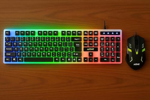 Generic - لوحة مفاتيح وماوس بسلك، طقم مقاوم للماء بتصميم مريح وإضاءة خلفية بألوان قوس قزح، متوافق مع أنظمة تشغيل مختلفة - X200