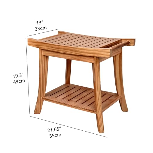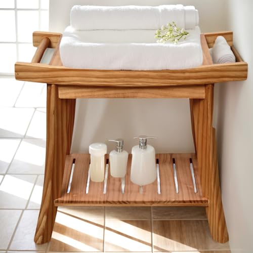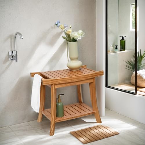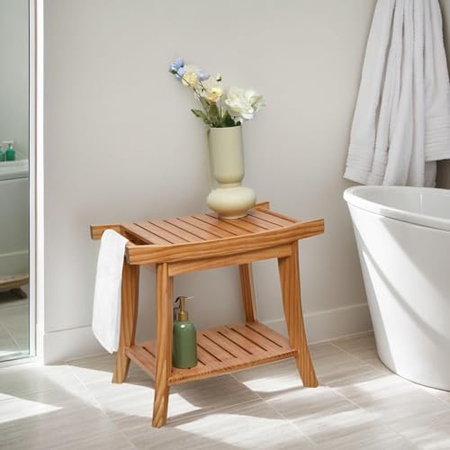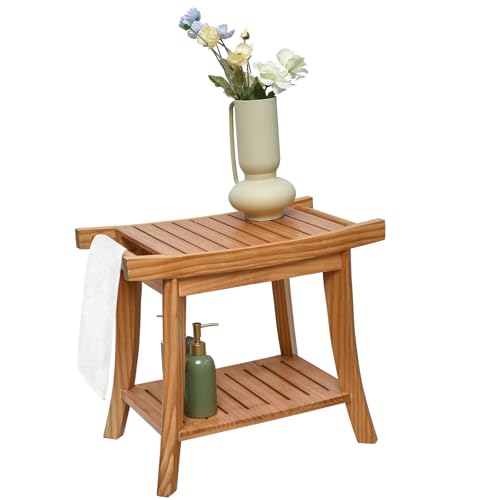 SwallowLiving - مقعد حمام خشبي مقاوم للماء للاستخدام الداخلي لحلاقة الساق، مع رف سفلي للفوطة - كرسي حمام سبا
