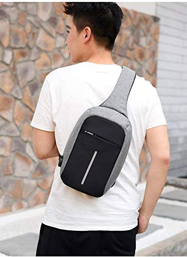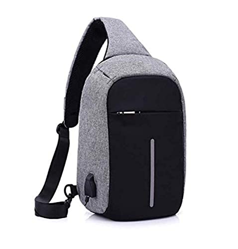 Generic - شنطة كروس مقاومة للماء مزودة بمنفذ USB للشحن عبر منفذ مضادة للسرقة مناسبة للسفر للنساء والرجال - رمادي