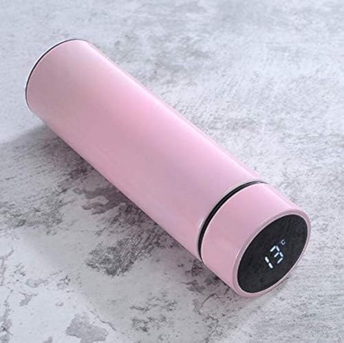 WATLD LC - زجاجة مياه ال سي من الستانلس ستيل من واتلد، كوب ذكي مع عرض درجة الحرارة في الجزء العلوي من الزجاجة، جودة ممتازة وتصميم عملي 500 مل (بينك)، زهري