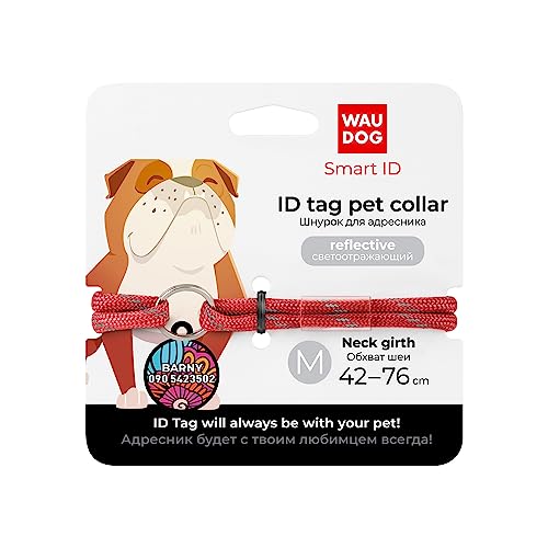 WAUDOG - طوق ذكي ببطاقة تعريف وباركود من واودوج، مقاس M، القطر 4 ملم، الطول 42-76 ملم، عاكس - أحمر