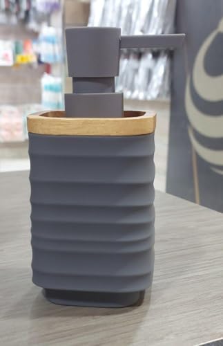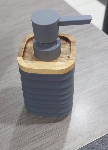 Generic - موزع صابون سائل مموج، رمادي، تصميم عصري مع حافة خشبية
