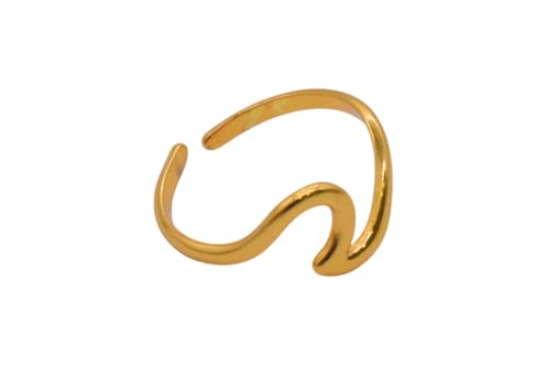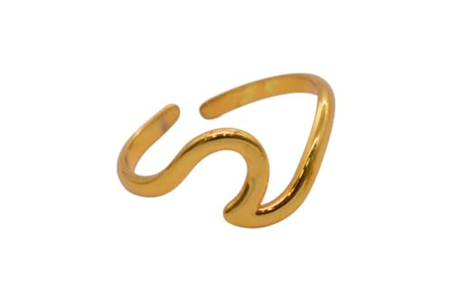 Generic - خاتم مفتوح من الستانلس ستيل بتصميم بسيط مموج - ذهبي