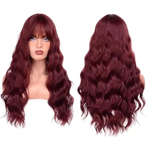 Generic - شعر مستعار مموج مع غرة شعر صناعي متوسط الطول قابل للغسل ويتحمل الحرارة