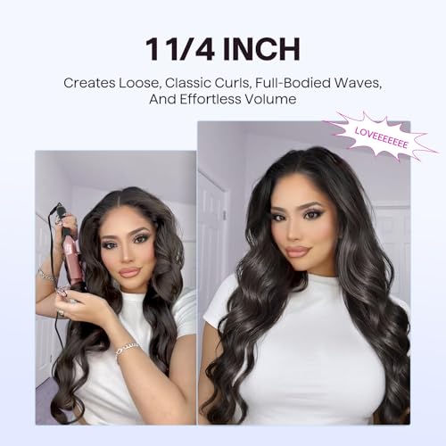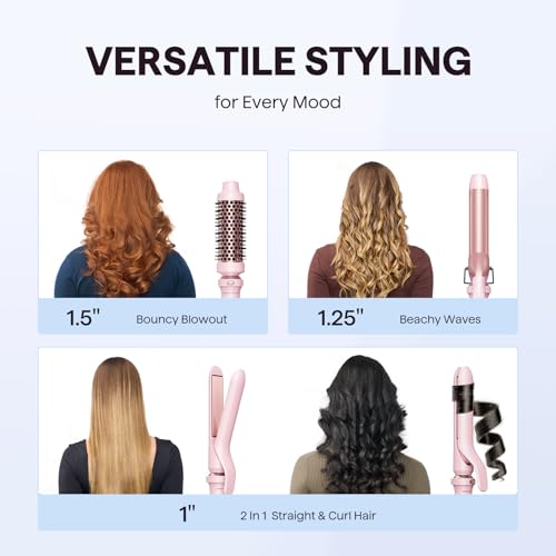 wavytalk - مجموعة عصا تمويج الشعر 3 في 1 من ويفي توك، مجموعة مكواة تمويج متعددة مع فرشاة دائرية ساخنة، مكواة فرد شعر مسطحة 1 1/4 انش، مكواة تجعيد شعر مزدوجة الجهد (بينك)