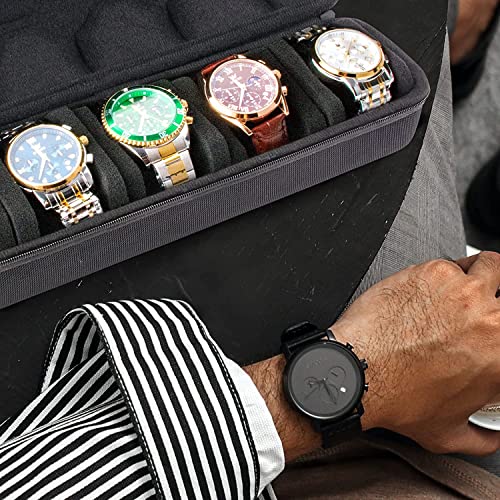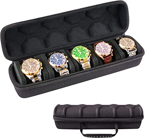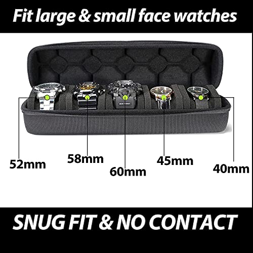 Wawasia - حافظة ساعات للسفر من واواسيا، حافظة ساعات بتصميم 5 فتحات لتخزين وتنظيم الساعات الصلبة للرجال والنساء مع مخدة ساعة مضادة للحركة، أسود